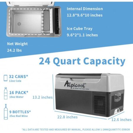 Alpicool Car Refrigerator 12/24V DC With USB Socket (40L, ECX40)